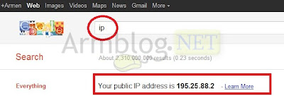 2011 » Октябрь » 25 » Google-ի օգտակար ֆունկցիան: Իմացեք Ձեր IP հասցեն պարզ որոնման միջոցով